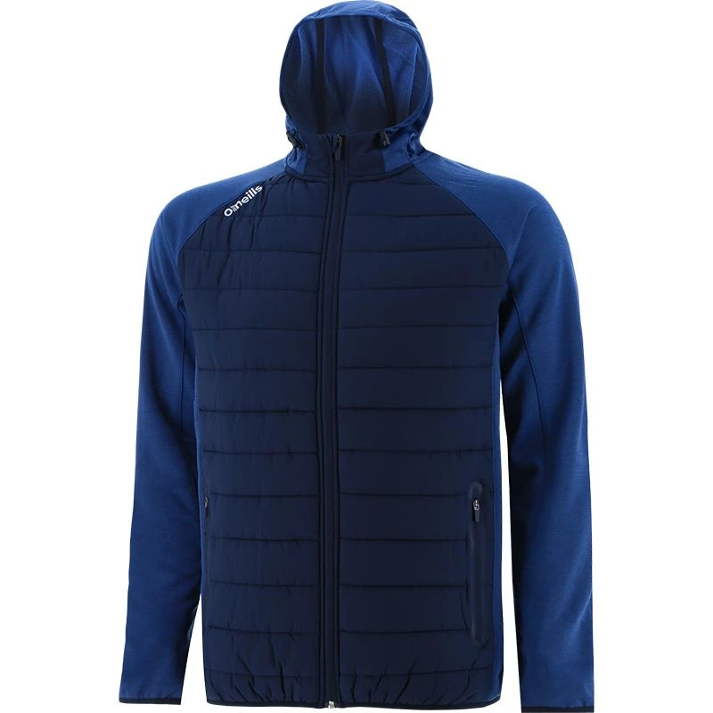 - Quilted body with performance fleece sleeve and hood